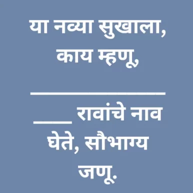 या नव्या सुखाला, काय म्हणू, __________________ रावांचे नाव घेते, सौभाग्य जणू.