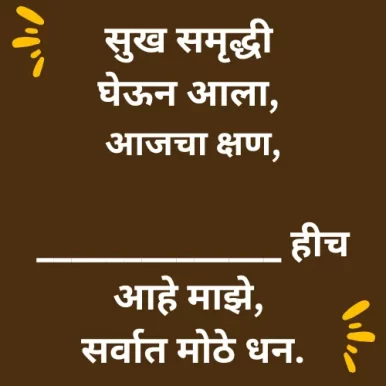 सुख समृद्धी घेऊन आला, आजचा क्षण, ______________ हीच आहे माझे, सर्वात मोठे धन.