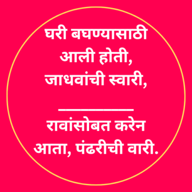 घरी बघण्यासाठी आली होती, जाधवांची स्वारी, __________ रावांसोबत करेन आता, पंढरीची वारी.