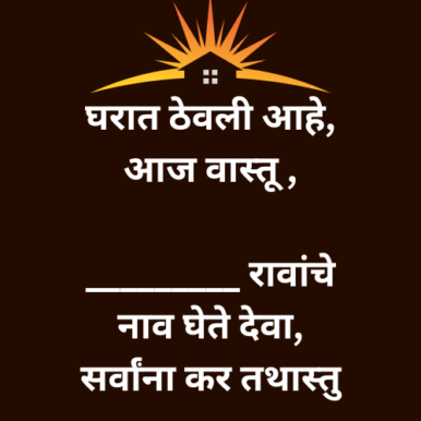 घरात ठेवली आहे, आज वास्तू , _________ रावांचे नाव घेते देवा, सर्वांना कर तथास्तु
