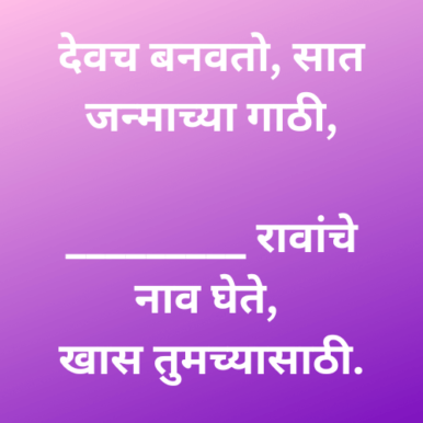 देवच बनवतो, सात जन्माच्या गाठी, _________ रावांचे नाव घेते, खास तुमच्यासाठी.
