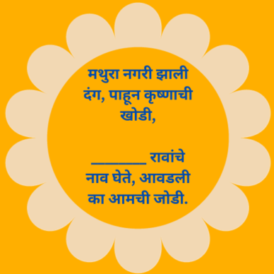 मथुरा नगरी झाली दंग, पाहून कृष्णाची खोडी, ________ रावांचे नाव घेते, आवडली का आमची जोडी.