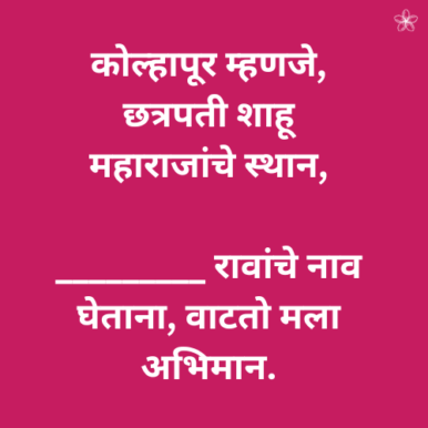 कोल्हापूर म्हणजे, छत्रपती शाहू महाराजांचे स्थान, _________ रावांचे नाव घेताना, वाटतो मला अभिमान.