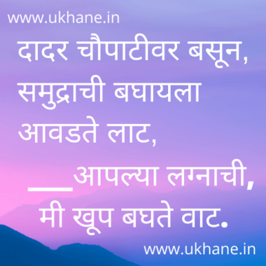 दादर चौपाटीवर बसून, समुद्राची बघायला आवडते लाट, ___आपल्या लग्नाची, मी खूप बघते वाट.